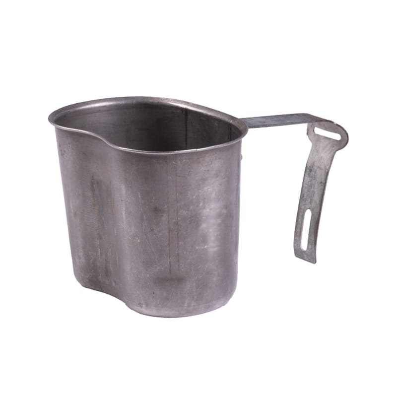 Gourde militaire américaine pour bouteille de campagne 1 l. Modèle avec poignée rabattable. La poignée peut être bloquée pour empêcher qu'elle ne se rabatte. Peut également être utilisée pour la cuisson. Contenance environ 500 ml.