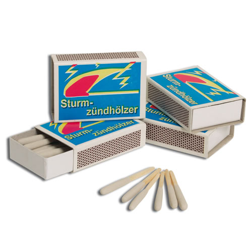 Allumettes spéciales résistantes au vent, qui ne s'éteignent pas pendant la combustion et s'allument plus facilement. Boîte d'environ 20 pièces. Plus d'informations