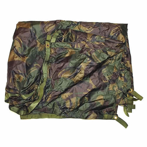 Abri polyvalent utilisé par l'armée britannique. Si vous avez besoin d'un endroit pour dormir, d'un abri ou d'un refuge d'urgence. 12 boucles renforcées autour des bords pour une fixation facile aux piquets.