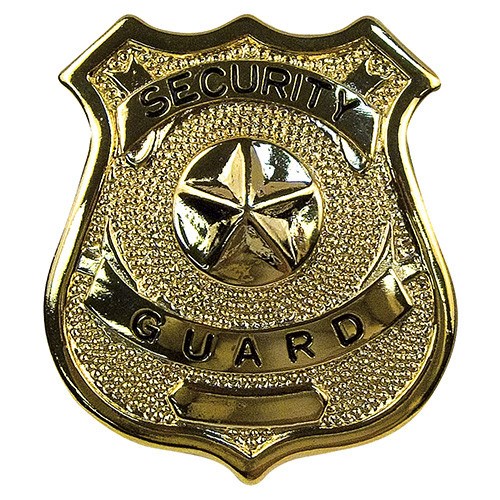 Insigne métallique doré portant l'inscription SECURITY GUARD.