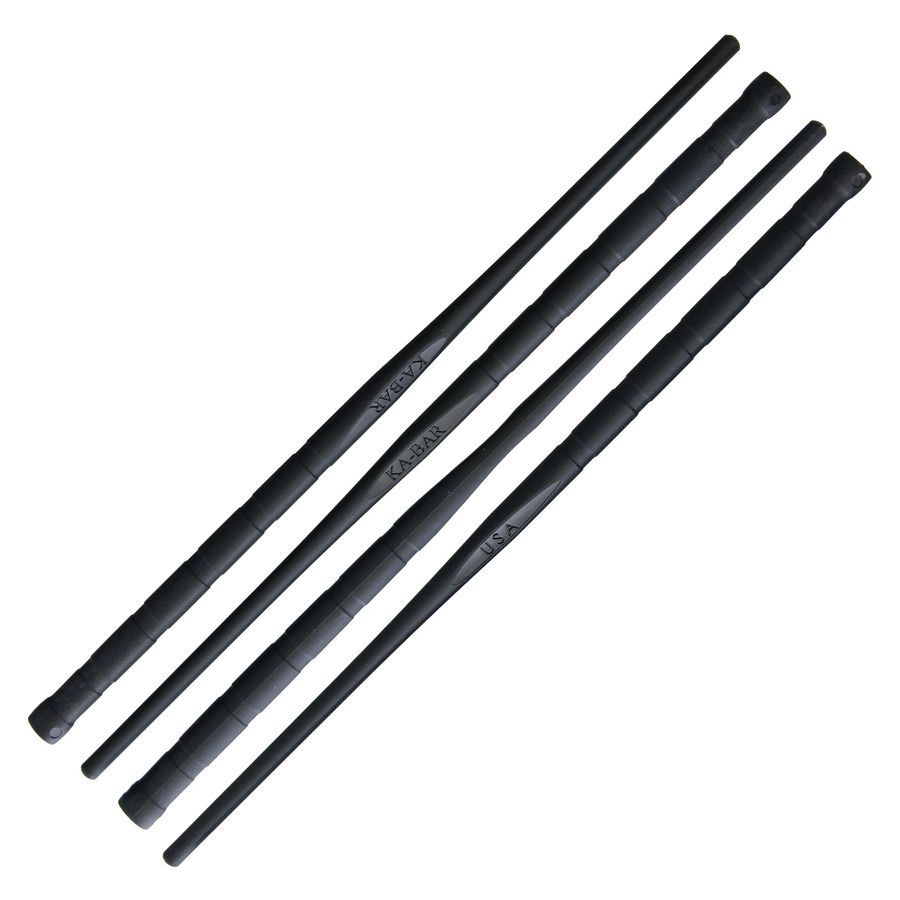 Manche plus large avec bandes antidérapantes, extrémité munie d'un trou pour passer une ficelle et permettre de les suspendre. Inscription KA-BAR au milieu de chaque baguette. Les baguettes sont fabriquées dans un matériau très solide et résistant, le Grilamid (plastique). 2 paires (4 pièces) par paquet.