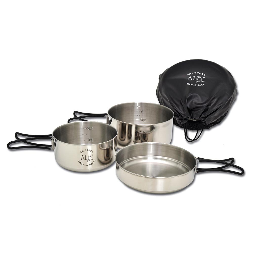 Le set de vaisselle de camping est fabriqué en acier inoxydable CrNi 18/10 de haute qualité, avec une surface polie à l'extérieur et finement poncée à l'intérieur. Les récipients sont dotés d'un rebord qui renforce leur solidité... Plus d'informations