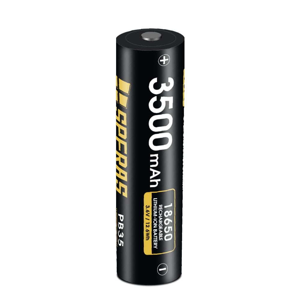 Batterie Li-Ion de haute qualité de type 18650 avec protection intégrée contre les surtensions. La conception unique de la batterie garantit une grande résistance aux chutes. Capacité de 3500 mAh, tension de 3,7 V, courant de décharge de 10 A. Plus d'informations