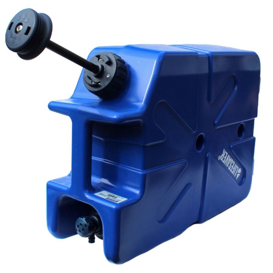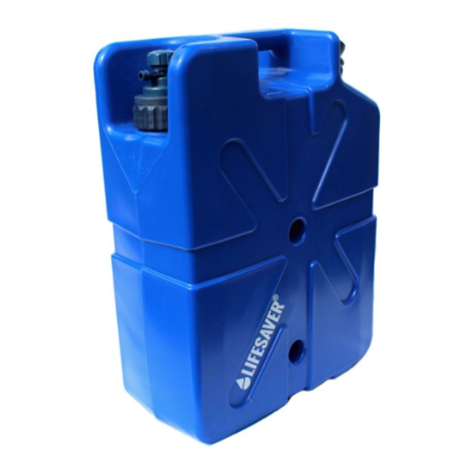 Bidon filtrant résistant de la marque britannique LIFESAVER, capable de filtrer jusqu'à 20 000 litres d'eau, éliminant les virus, les micro-organismes et les bactéries. La capacité du bidon est de 18,5 litres. Plus d'informations