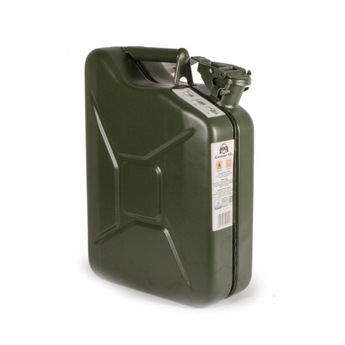 Bidon métallique certifié TÜV Rheinland®, fabriqué en Allemagne. Couleur vert militaire, mat. Plus d'informations