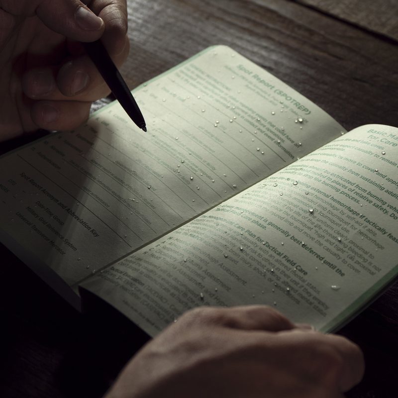 Carnet tactique - bloc-notes, carnet. La reliure résistante et parfaite du cahier tient fermement même par temps très défavorable et résiste à une utilisation intensive. Les couvertures sont en Field-Flex, un matériau qui leur confère souplesse et stabilité. À quoi cela ressemble-t-il ? Le carnet se plie facilement et se glisse dans une poche, sac à dos ou sacoche. Une fois sorti, il reprend sa forme initiale sans subir de dommages. Le cahier contient des règles en unités métriques et impériales (utilisées par exemple aux États-Unis), des tables de conversion et des échelles cartographiques, indispensables pour une utilisation tactique/militaire. Dimensions : 11,75 x 18,4 x 1,3 cm. Poids : 0,2 kg.
