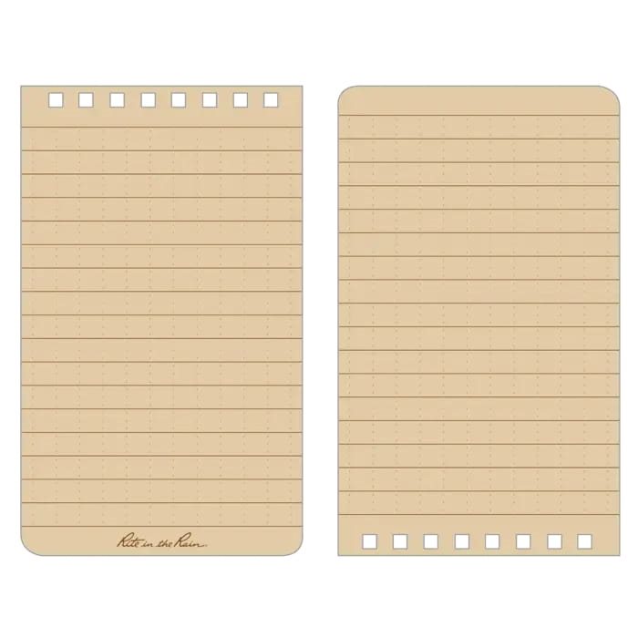 Carnet à lignes imperméable à reliure à anneaux. Dimensions : 127 x 76 mm. 50 feuilles. Le bloc comprend des conversions entre les unités impériales et métriques, ainsi que des échelles cartographiques. Fabriqué aux États-Unis. Plus d'informations