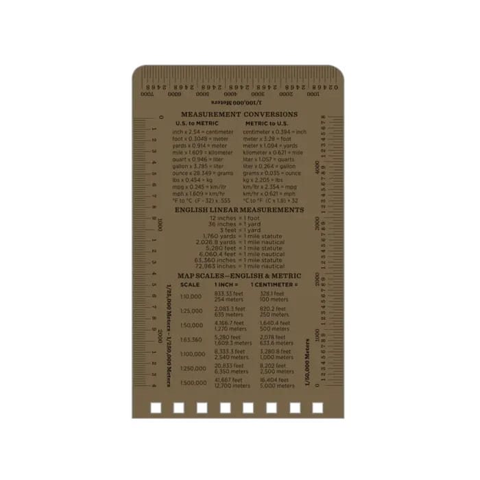 Sur les couvertures, vous trouverez une règle en centimètres et en pouces, un tableau de conversion entre le système métrique et le système américain (impérial), ainsi qu'un tableau de conversion des échelles cartographiques, également en système métrique et impérial. Dimensions : 12,7 x 7,6 cm.