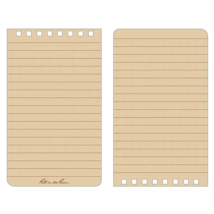 Carnet à lignes imperméable à reliure à anneaux. Dimensions : 127 x 76 mm. 50 feuilles. Le bloc comprend des conversions entre les unités impériales et métriques, ainsi que des échelles cartographiques. Fabriqué aux États-Unis. Plus d'informations