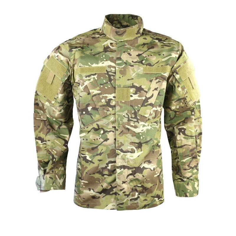 Blouse tactique de coupe ACU fabriquée dans un matériau résistant. Elle se ferme à l'aide d'une longue fermeture éclair centrale recouverte d'une patte. Le col est montant et peut être fermé à l'aide d'une bande Velcro afin de vous protéger des intempéries. La veste comporte sept poches au total. Les coudes sont renforcés par une double épaisseur de tissu. Plusieurs panneaux Velcro sont disponibles sur la veste pour y apposer vos écussons ou vos noms.