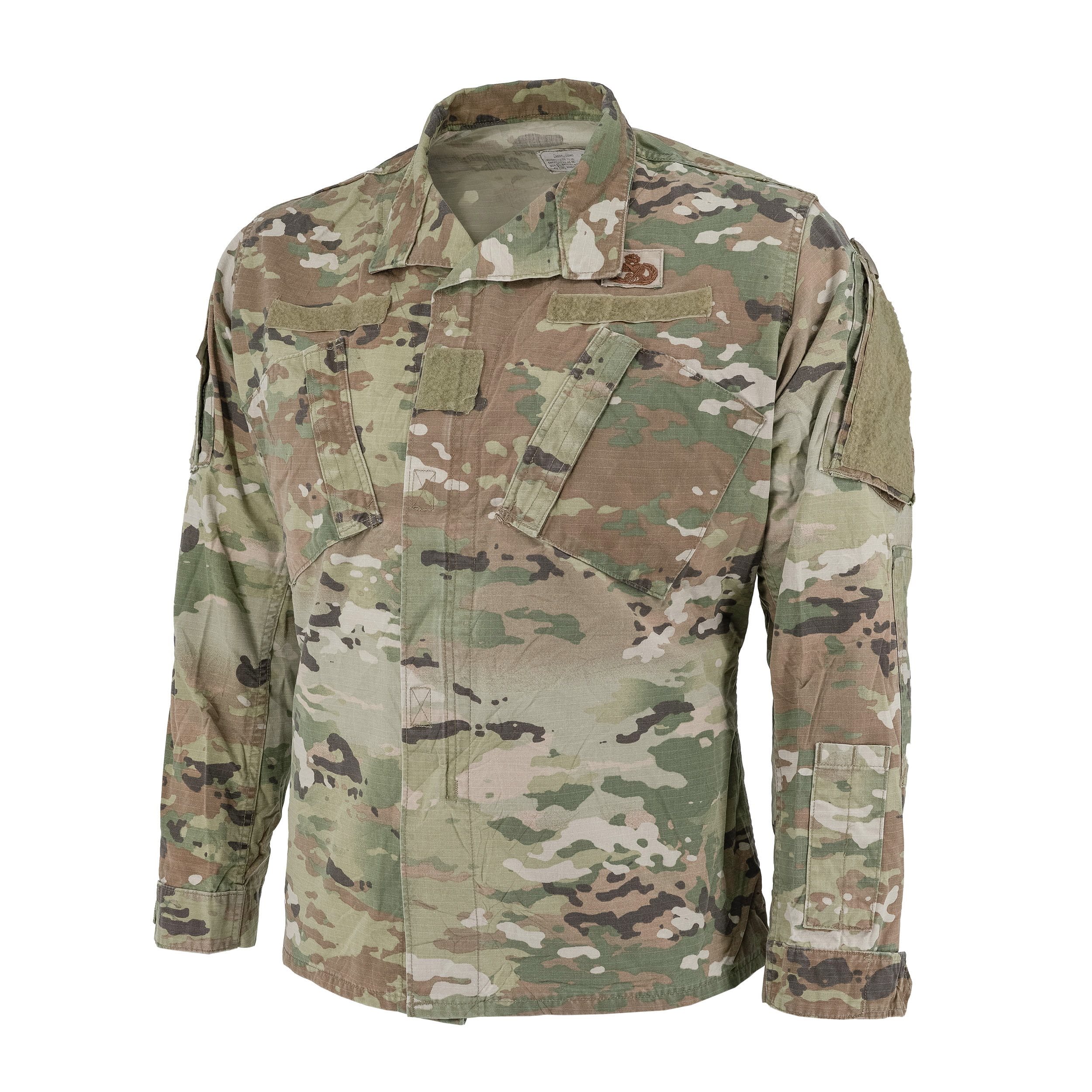 Blouse originale américaine de coupe Army Combat Uniform avec l'imprimé Operational Camouflage Pattern (Scorpion W2) actuellement en vigueur. Article d'occasion.