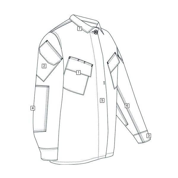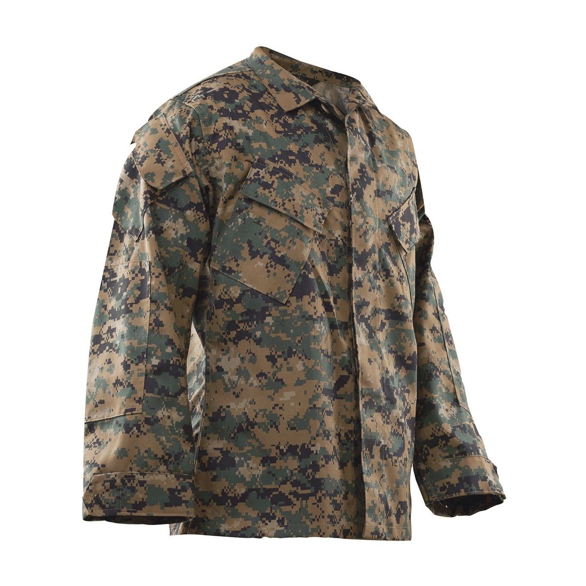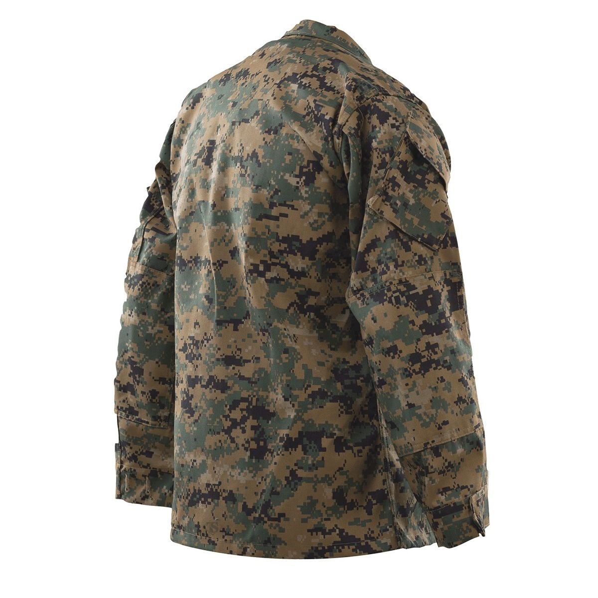 Blouse de combat utilisée par l'USMC (United States Marine Corps) de la marque TRU-SPEC. Elle est fabriquée dans un tissu mélangé résistant (35 % coton, 65 % polyester). Motif camouflage Digital Woodland.