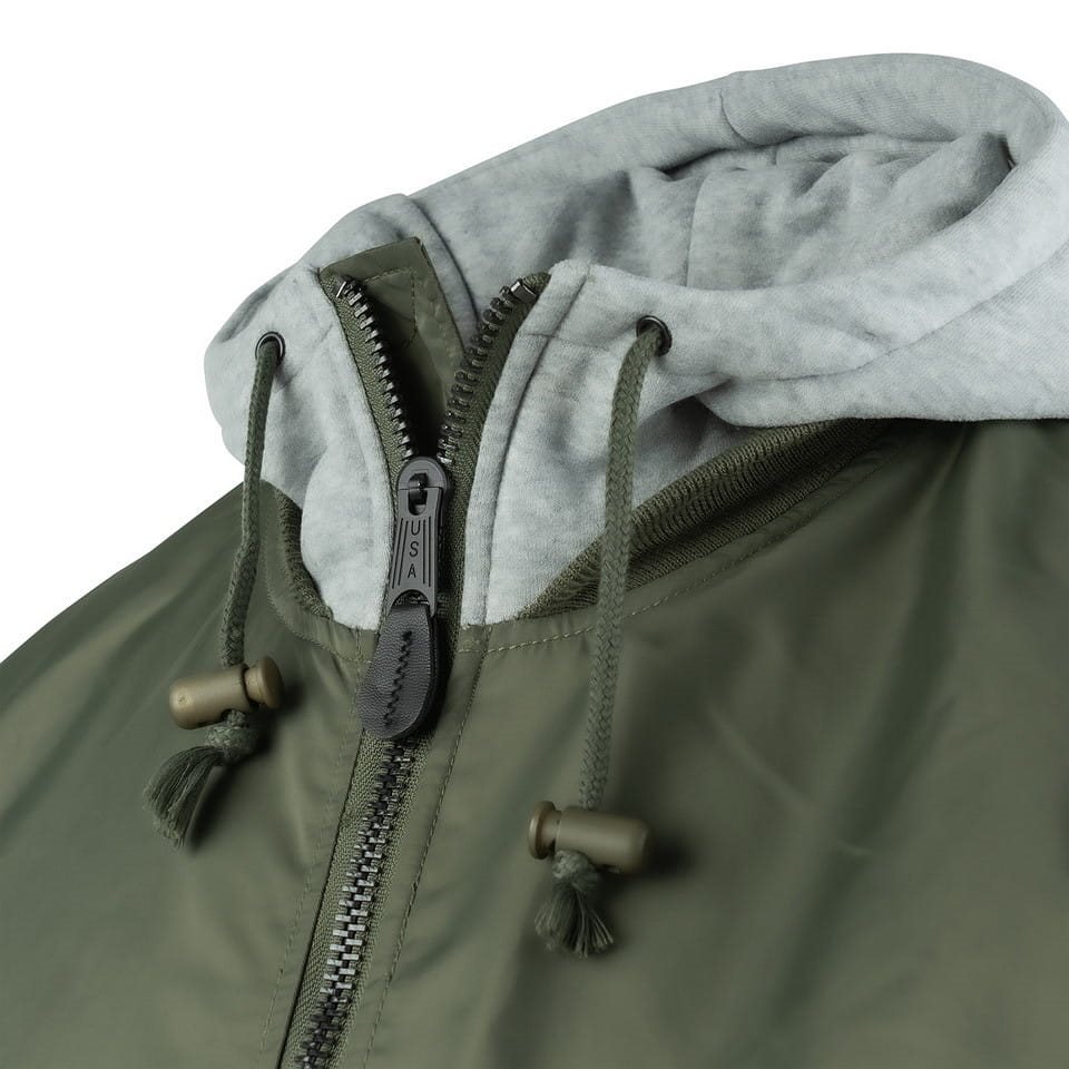 Veste isolante inspirée de la légendaire veste de pilote MA1. Elle est fabriquée à partir d'un tissu extérieur en nylon résistant, complété par une doublure en polyester et un col en coton avec une capuche réglable.