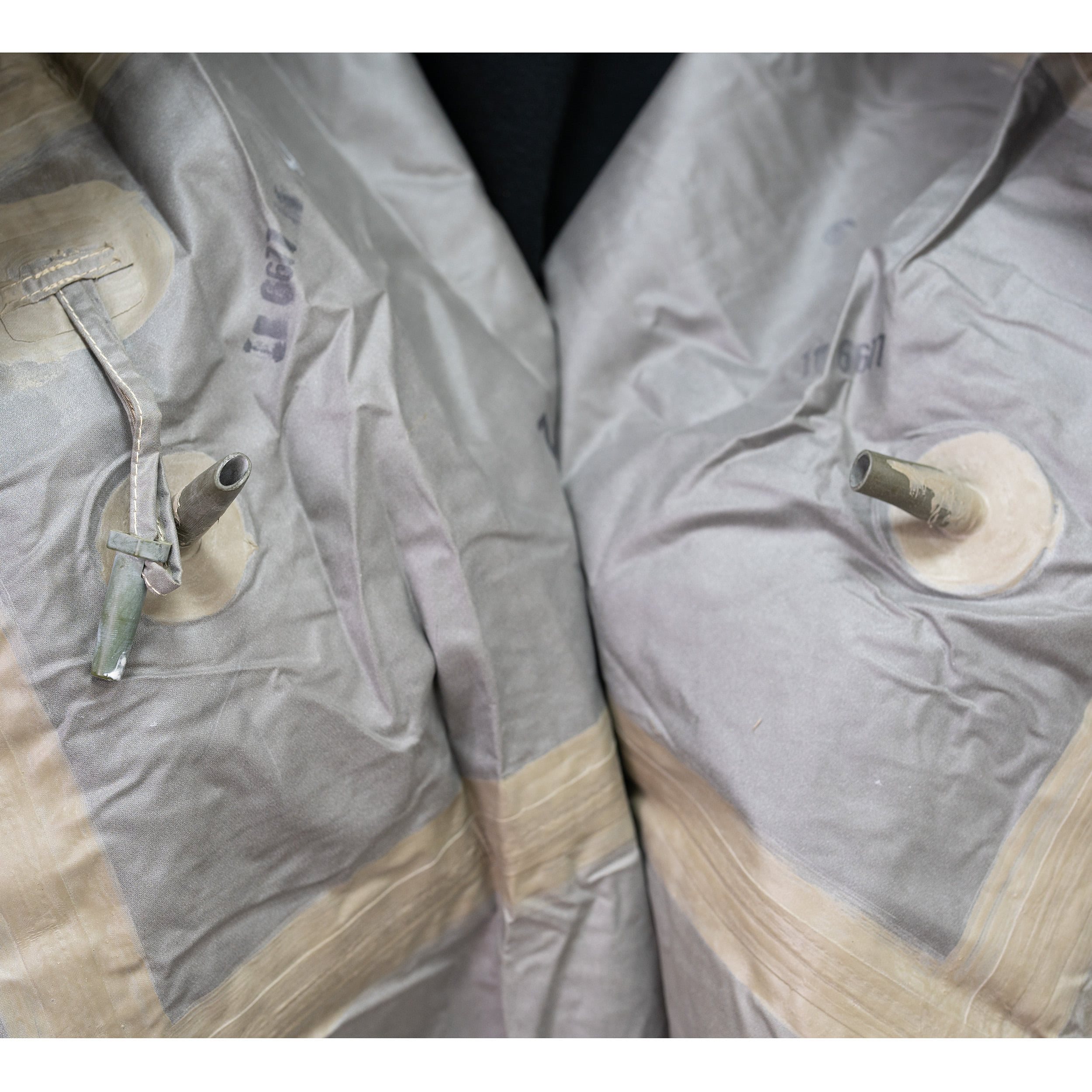Des gants en caoutchouc étaient cousus dans les manches. L'ensemble était fabriqué en tissu polyamide recouvert d'oppanol ou de caoutchouc butyle. L'imperméable se portait soit enroulé sur le dos à hauteur des épaules, soit dans un sac à dos. Il pouvait également être utilisé comme combinaison en enroulant les bords inférieurs de l'imperméable autour des jambes. La partie sous les aisselles du manteau est à double paroi, formant deux chambres. Une fois gonflées (à l'aide de valves), celles-ci permettaient de franchir des obstacles aquatiques. Deux manteaux étaient nécessaires pour monter la tente.