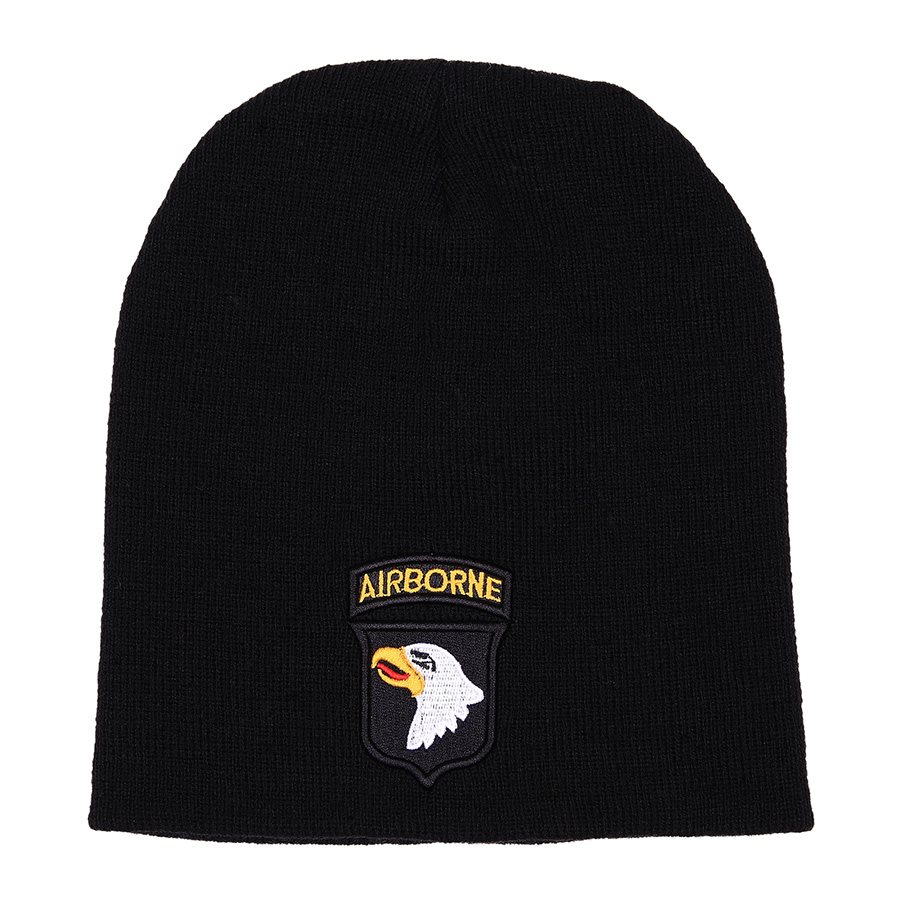 Bonnet tricoté et chaud pour les temps froids. Le bonnet est orné d'un écusson représentant l'emblème de la 101e division aéroportée (101st Airborne) des États-Unis, surnommée les « Screaming Eagles ». Composition : 100 % acrylique. Plus d'informations