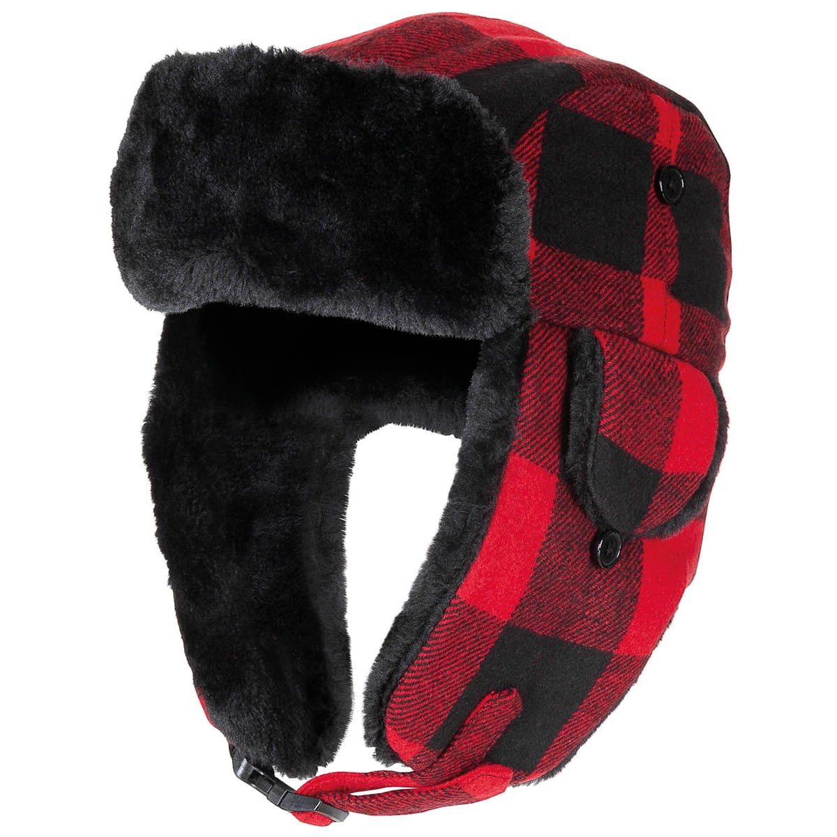 Élégant bonnet de bûcheron à carreaux rouges et noirs.