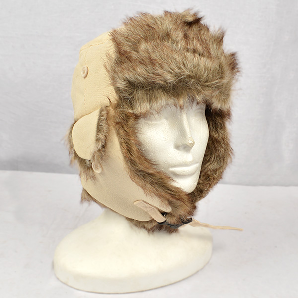 Une très belle chapka russe doublée, avec de la fourrure synthétique et une surface en coton. Plus d'informations