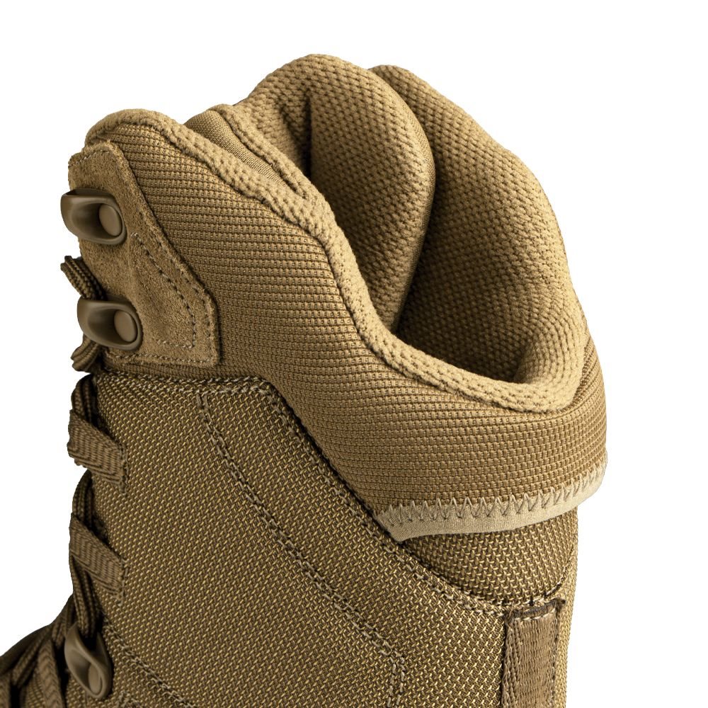 Le système de laçage est compatible avec les détecteurs de métaux, répond aux exigences de la TSA et permet d’enfiler et de retirer rapidement la chaussure. La languette est reliée à la chaussure de manière à empêcher toute pénétration indésirable de saletés et dispose d’un compartiment intégré pour ranger les lacets. L'un des principaux atouts de cette chaussure réside dans le système TacFit Technology® qui permet un réglage variable de la largeur intérieure à l'aide de la semelle intérieure fournie. La semelle intérieure PerfX® est fabriquée à partir de 30 % de matériaux recyclés et offre un haut niveau de confort.