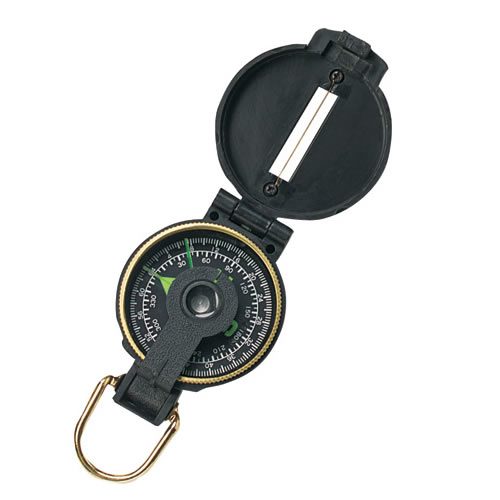 Boussole dans un étui en plastique avec remplissage liquide et loupe.
