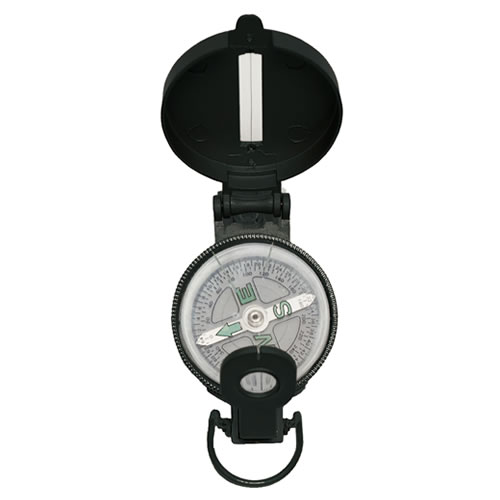 Réplique d'une boussole américaine. Boîtier métallique. Loupe dans le viseur. Échelle rotative. Cordeau de visée dans le couvercle. Plus d'informations