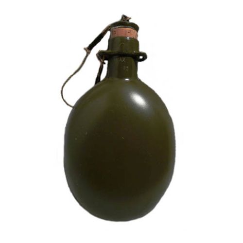 Bouteille de campagne originale utilisée par l'armée tchèque. La bouteille de campagne est en métal, de couleur olive. Contenance 1 l. Bouchon en liège. Plus d'informations