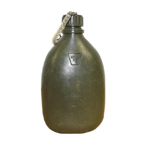 Bouteille de campagne en plastique d'origine provenant d'une liquidation de l'armée suédoise. Contenance d'environ 0,7 litre. Produit d'origine d'occasion.