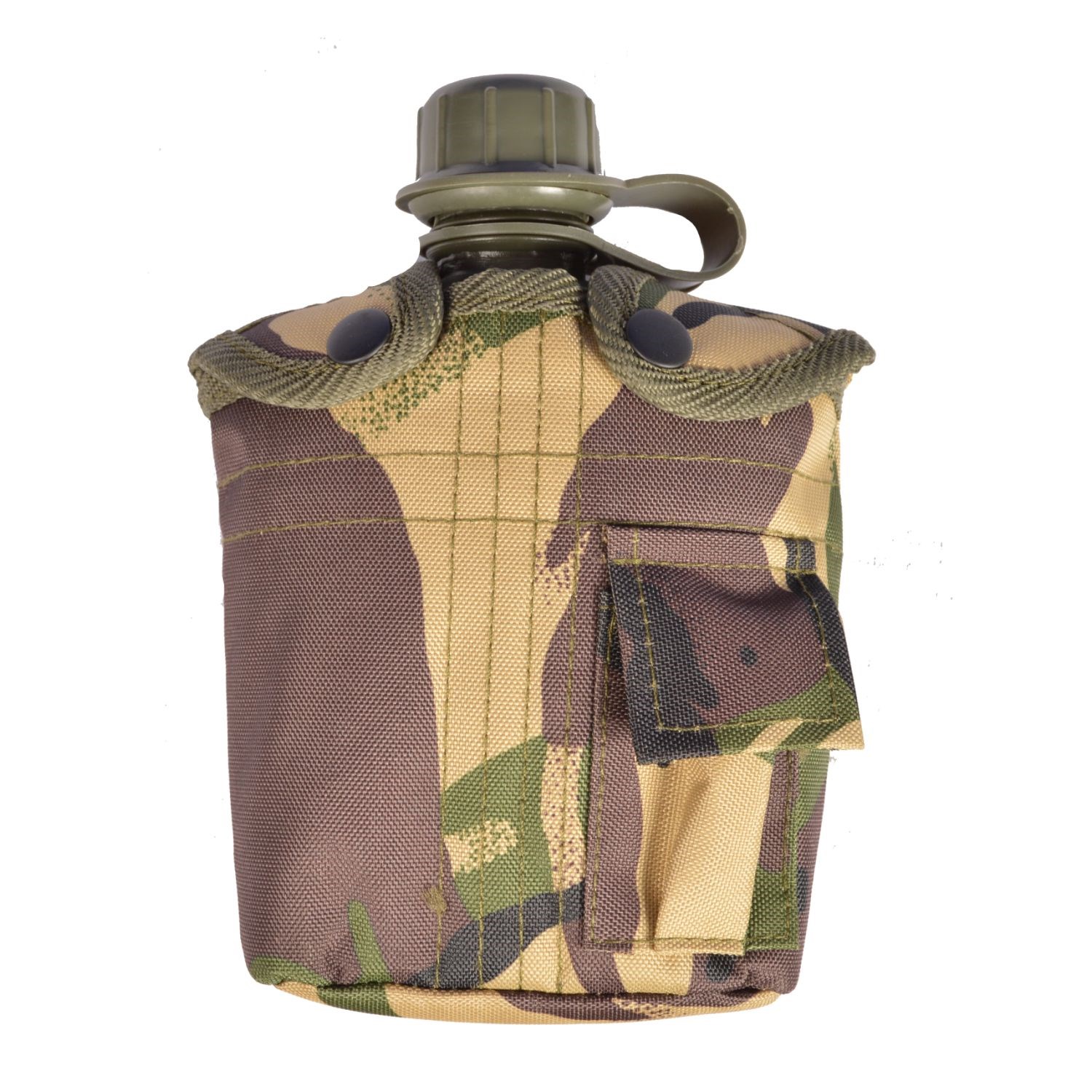 Bouteille en plastique pour l'eau dans un étui camouflé.