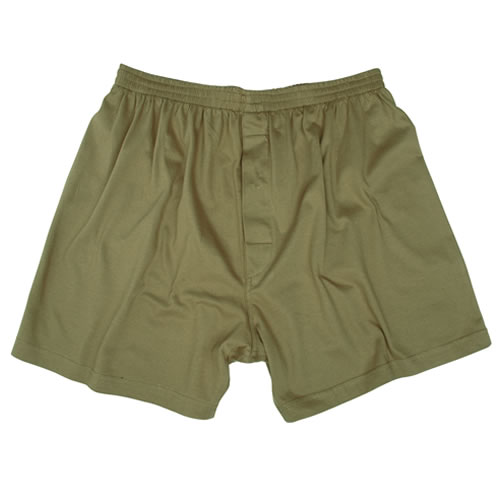 Caleçons confectionnés selon le modèle de l'armée britannique. Confortables, coupe ample, avec une large bande élastique à la taille. Braguette à deux boutons. Couleur : olive (vert). Composition : 100 % coton. Plus d'informations