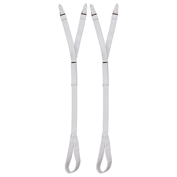 Des bretelles qui empêchent votre chemise ou votre t-shirt de sortir de votre pantalon, vous garantissant ainsi une apparence toujours impeccable. Fixez les clips à l'extrémité de votre chemise/t-shirt et enfilez l'autre extrémité (l'œillet) sur votre pied.