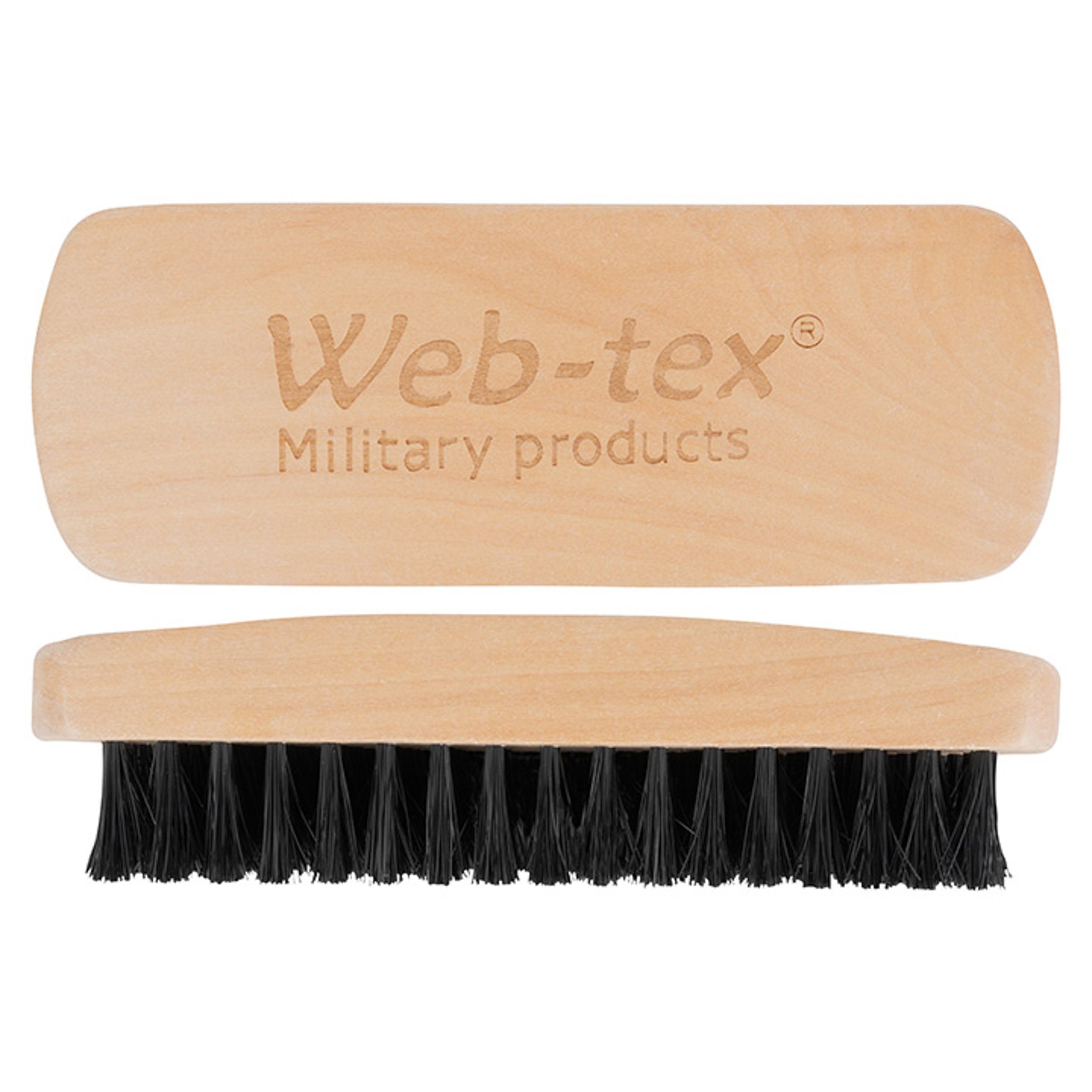 Brosse pour le nettoyage des chaussures. Manche en bois. Dimensions : environ 15 x 5,5 x 3,5 cm. Poils en nylon. Plus d'informations