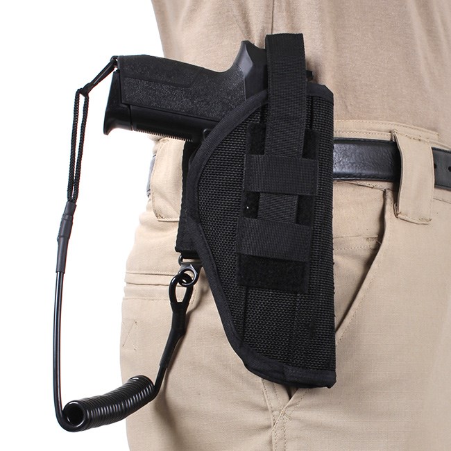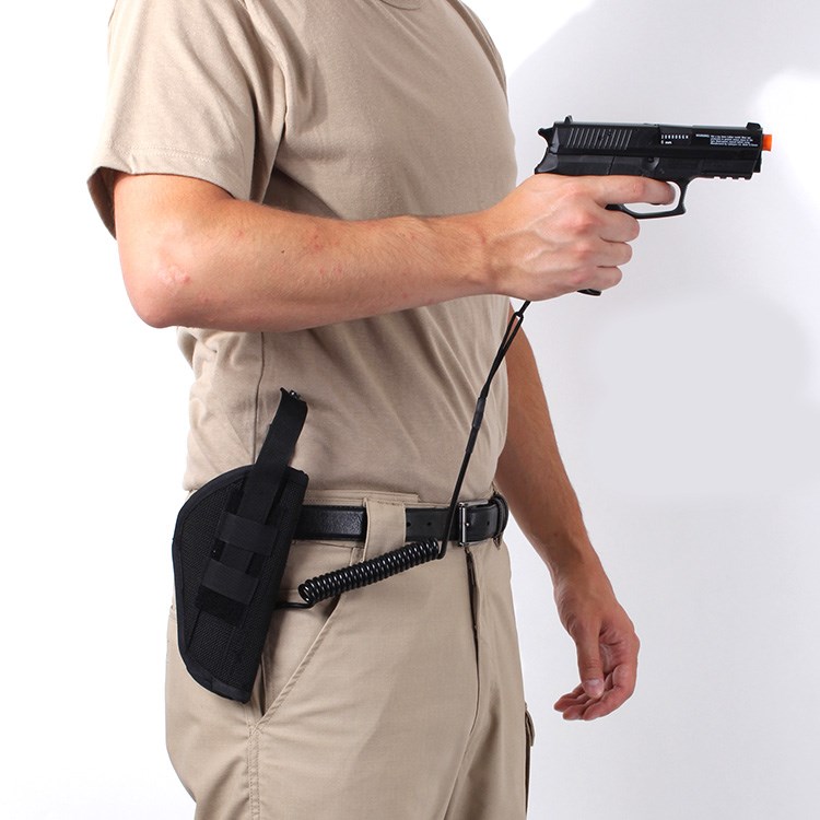 Câble de sécurité pour arme, extensible jusqu'à 140 cm. Peut être fixé à une ceinture, un clip, un étui, etc.