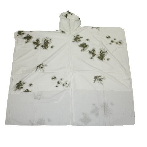 Grand poncho de neige de l'armée allemande BUNDESWEHER, de coupe précise - d'occasion. Le poncho ne possède pas de manches classiques, mais des ouvertures pour les bras, qui sont ourlées avec un élastique. La longueur des « manches » (mesurée à partir de la couture de la capuche) est de 76 cm, la largeur totale du poncho (d'un bout à l'autre des manches) est de 100 cm. de caoutchouc. La longueur des « manches » (mesurée à partir de la couture de la capuche) est de 76 cm, la largeur totale du poncho (d'une extrémité de la manche à l'autre) est de 160 cm. La longueur de la partie avant est de 91 cm, la longueur de la partie arrière est de 131 cm. La capuche est munie d'un cordon de serrage.