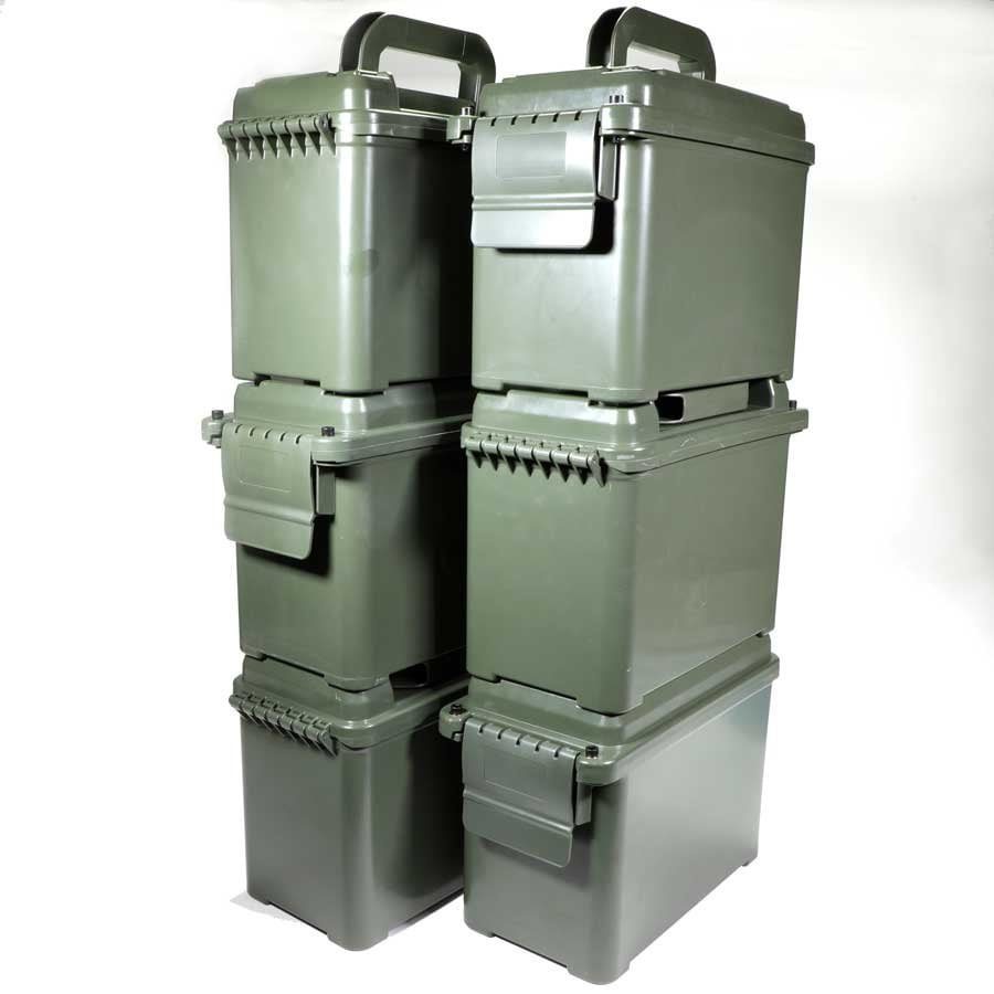 Caisse en plastique solide pour le transport ou le stockage de munitions.