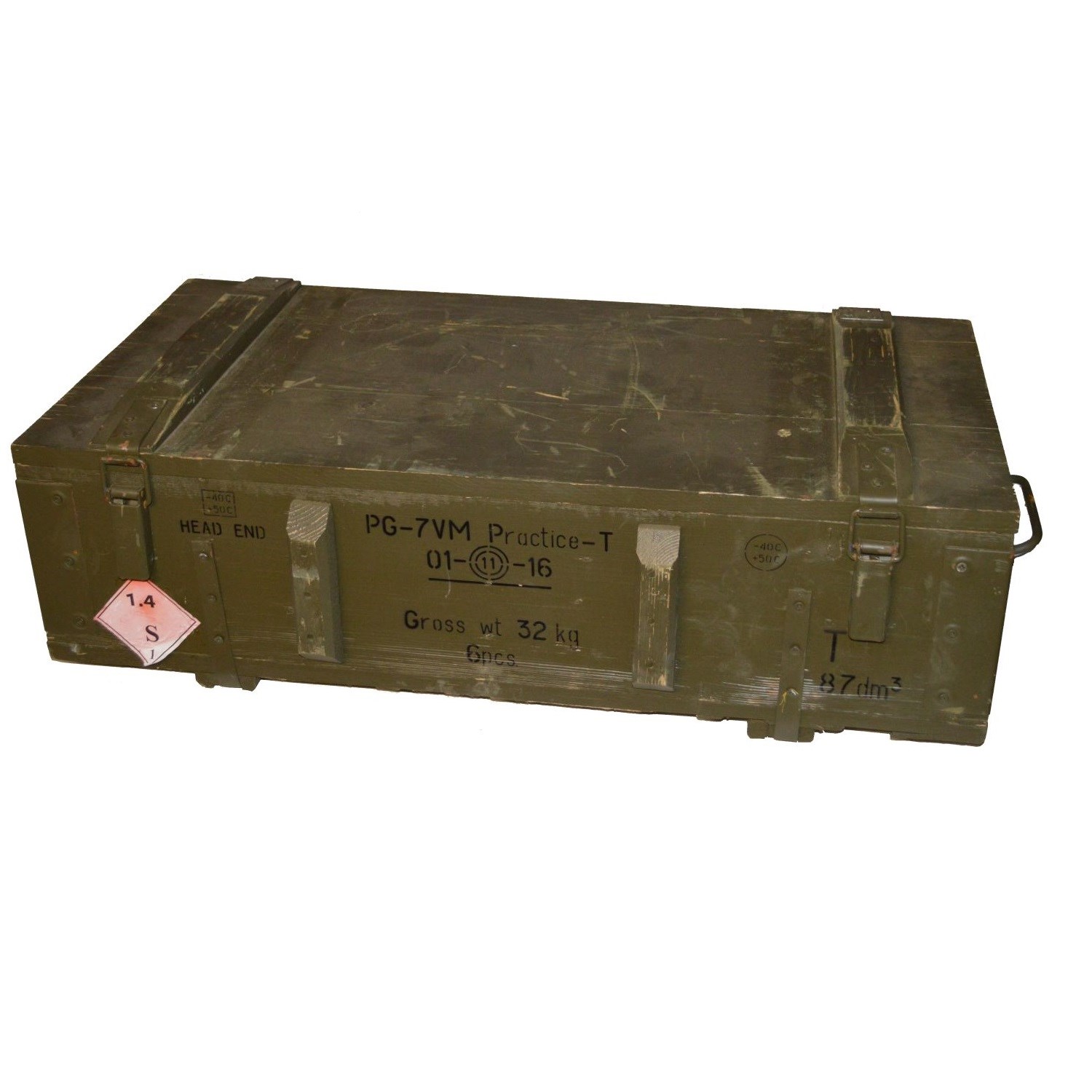 Caisse en bois avec couvercle. Auparavant utilisée pour le transport de munitions.