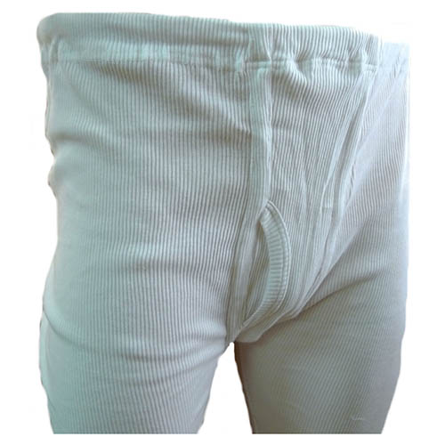 Jambes longues terminées par un ourlet, taille élastiquée, double gousset cousu à l'entrejambe avec fente. Poids : 190 g. Matière : tricot côtelé 100 % coton, élastique. Plus d'informations