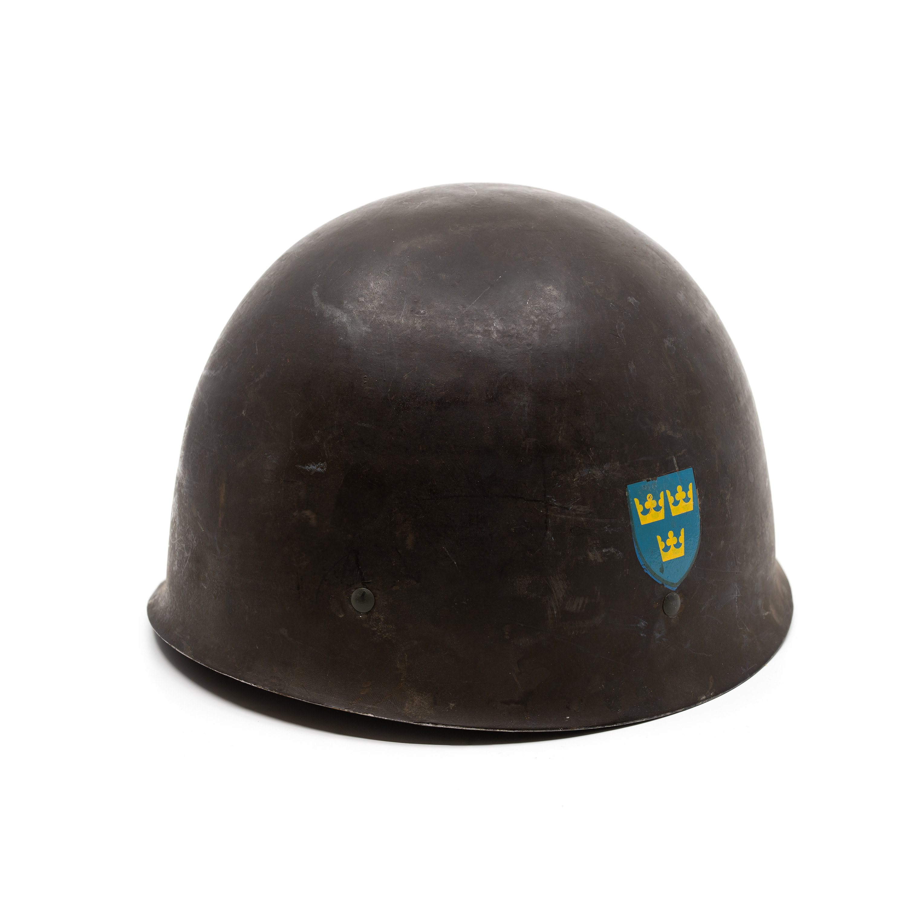 Casque en acier utilisé par l'armée suédoise. Le modèle original M37 a été amélioré en 1965 grâce à une nouvelle doublure confortable pouvant être retirée rapidement. Ce casque a été utilisé jusqu'aux années 1990, date à laquelle il a été remplacé par le modèle M1990 en kevlar, plus moderne. Il est intéressant de noter que pendant la guerre d'hiver, ce casque a été fourni à la Finlande dans le cadre d'un programme d'aide et qu'une copie connue sous le nom de M40 a ensuite été fabriquée en Finlande. Le casque est légèrement usagé, mais en très bon état. Elle n'offre aucune protection EPI (équipement de protection individuelle). Ce produit ne peut être utilisé qu'à des fins décoratives ou pour des costumes.