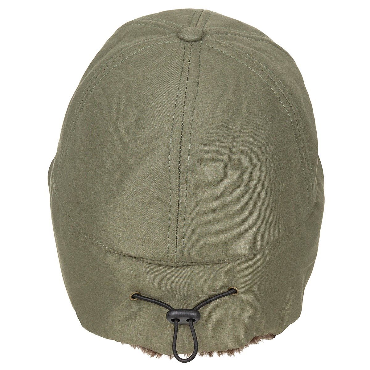 Bonnet isolé avec visière. Grâce à sa fourrure synthétique, il protège efficacement les oreilles et le cou du froid. La taille du bonnet peut être ajustée à l'aide d'un cordon avec bloqueur.