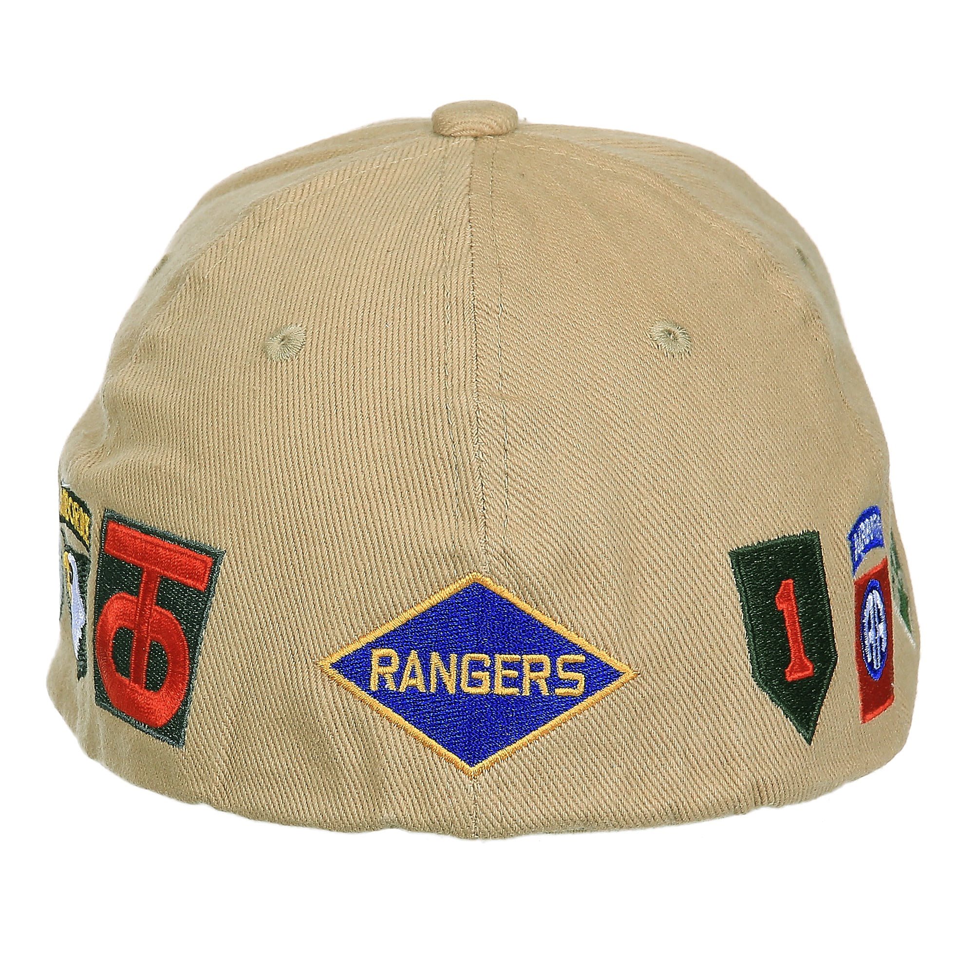 Casquette confortable et bien ajustée avec broderie 3D D-DAY (jour J) et 7 autres broderies colorées plus petites - 1ère infanterie, 4ème infanterie, 29ème infanterie, 90ème infanterie, bataillon Rangers, 82ème aéroportée, 101ème aéroportée. Plus d'informations