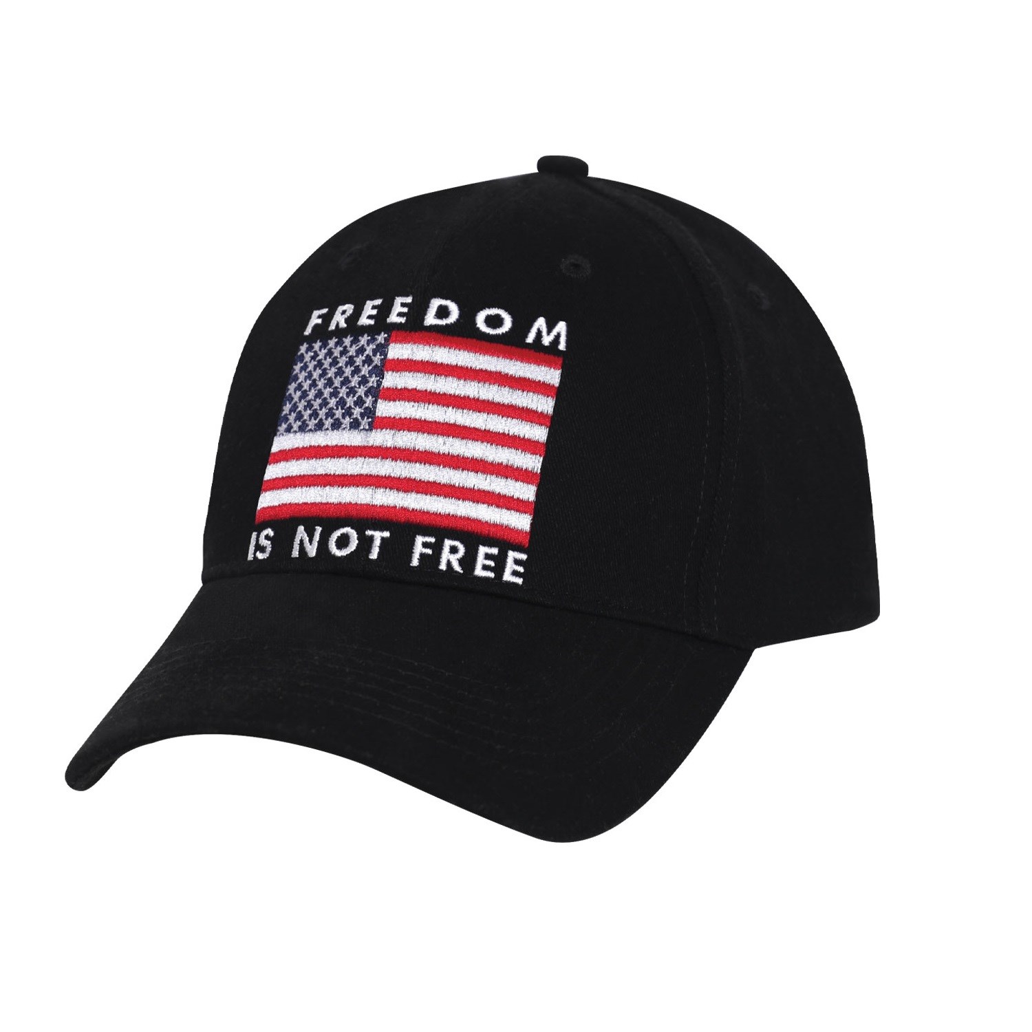 Casquette à visière basse avec drapeau américain brodé en couleur et inscription « Freedom is not free ». Bandeau anti-transpiration sur tout le pourtour intérieur. Taille réglable à l'aide d'une bande velcro. Composition : 100 % coton peigné. Plus d'informations