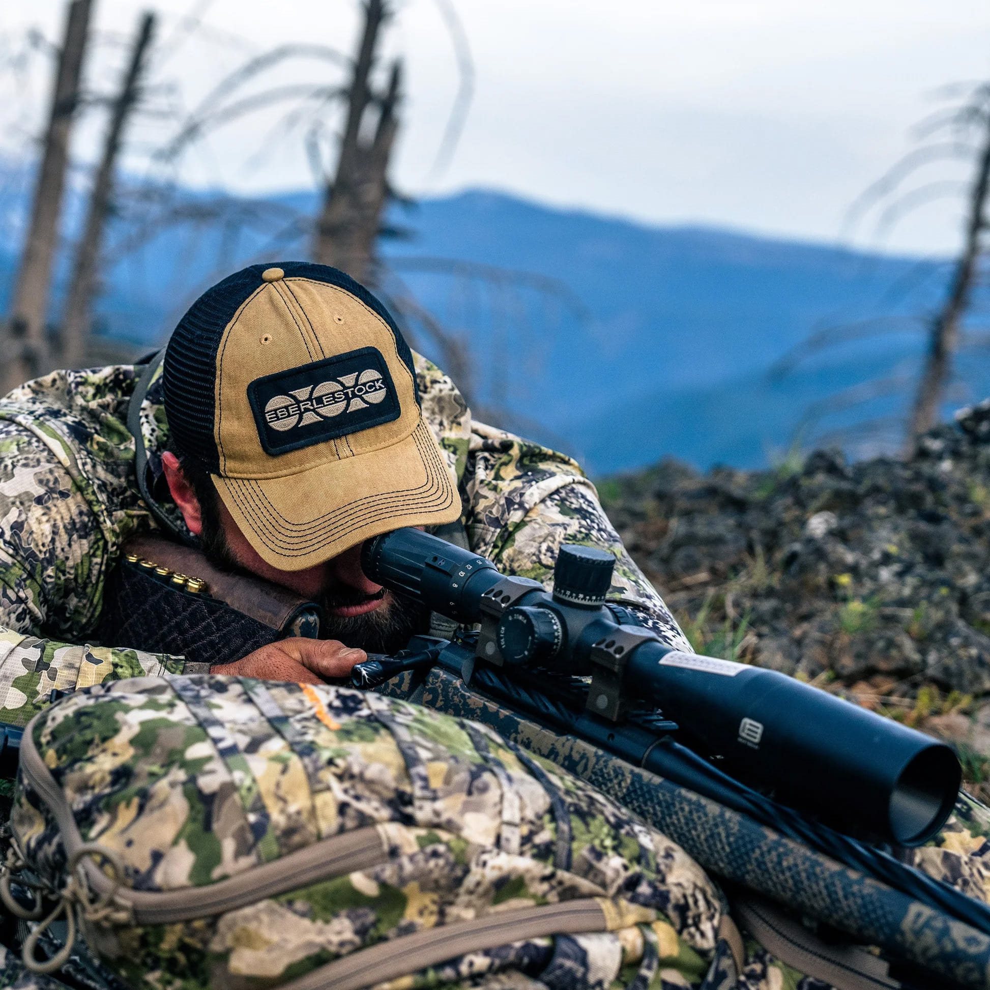 Casquette de baseball haut de gamme fabriquée à partir d'un mélange de denim résistant et de maille arrière respirante. La casquette est ornée d'un écusson avec le logo EBERLESTOCK sur le devant. Taille unique.