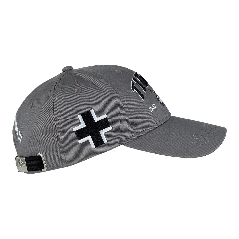 Casquette de baseball conçue pour les admirateurs du légendaire char d'assaut de la Seconde Guerre mondiale TIGER I. La casquette porte l'inscription TIGER I, la date de fabrication du char (1942 à 1945), le numéro 205 et l'inscription Panzerkampfwagen VI.