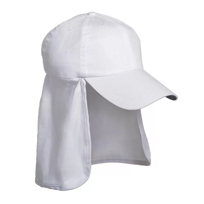 Casquette en coton aérée avec protection pour le cou. Matériau léger et agréable.