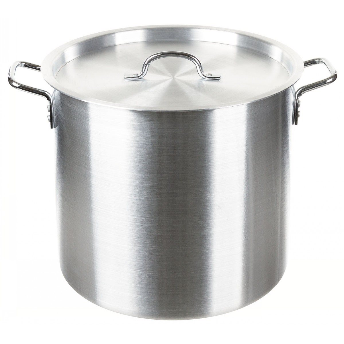 Grande marmite en aluminium d'une capacité d'environ 30 litres. Diamètre 36 cm, hauteur 31 cm. Couvercle inclus.