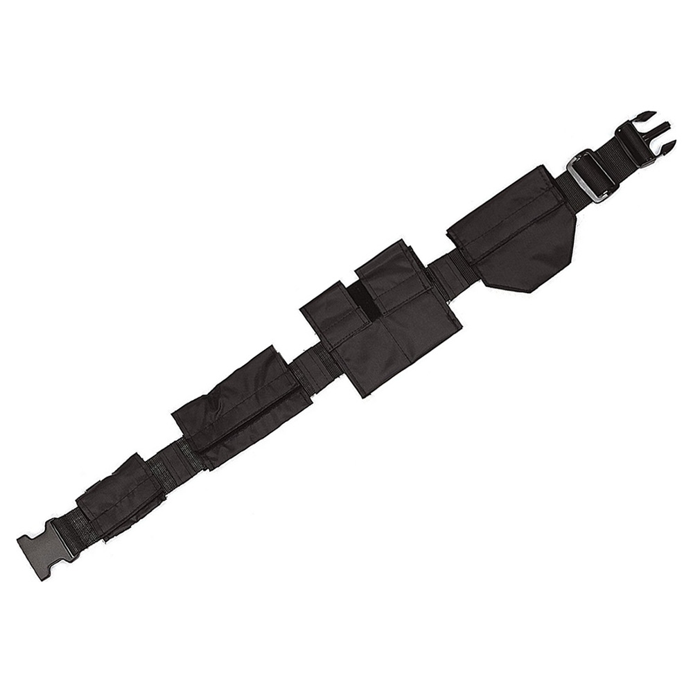 Ceinture tactique large et ajustable avec quatre poches individuelles.