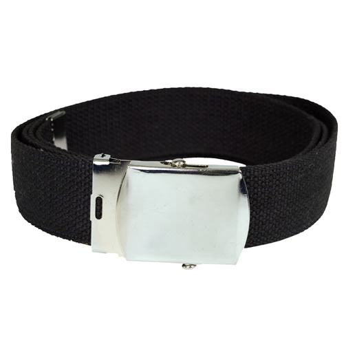 Ceinture textile US avec boucle métallique. Largeur : 3,8 cm. Longueur : réglable jusqu'à 116 cm. Matériau : 100 % coton.