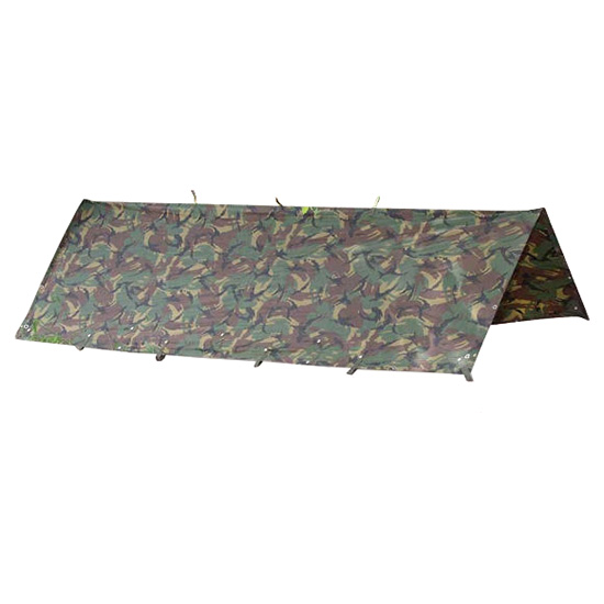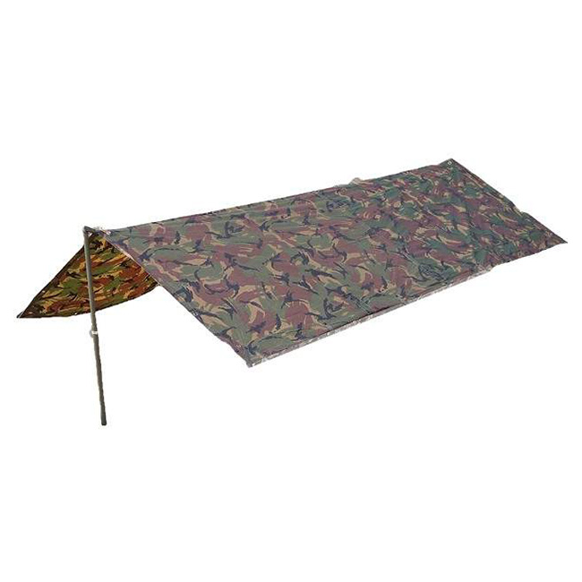 Abri polyvalent. Peut être utilisé comme sac de couchage. Coutures renforcées aux extrémités. Œillets en laiton aux coins. Matériau : nylon avec double revêtement PU. Poids : 1,11 kg. Dimensions : 250 cm x 170 cm. Plus d'informations