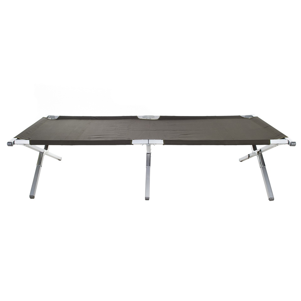 le matériau s'humidifie moins. Pour plus de solidité, le lit est renforcé sur toute sa largeur par 4 bandes de tissu en nylon. La chaise longue est plus large que la plupart des chaises longues de ce type : elle mesure 75 cm de large et 210 cm de long. Une fois pliée, la chaise longue peut être maintenue à l'aide d'une sangle en nylon fournie avec la chaise longue.