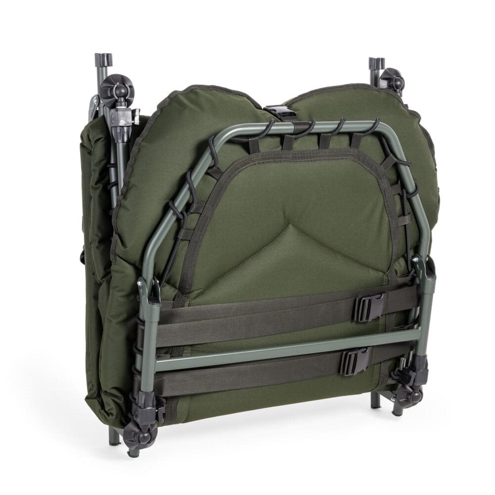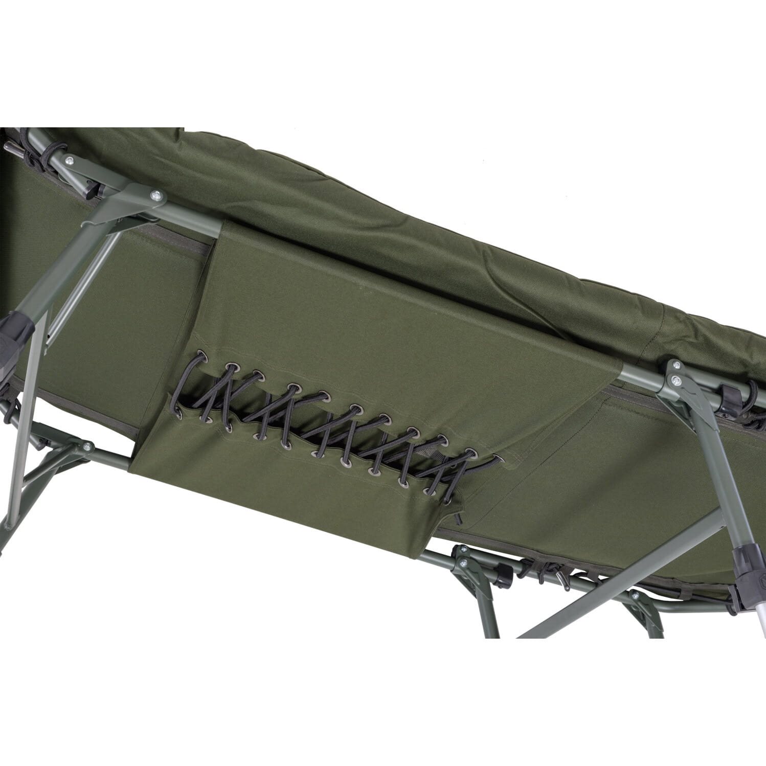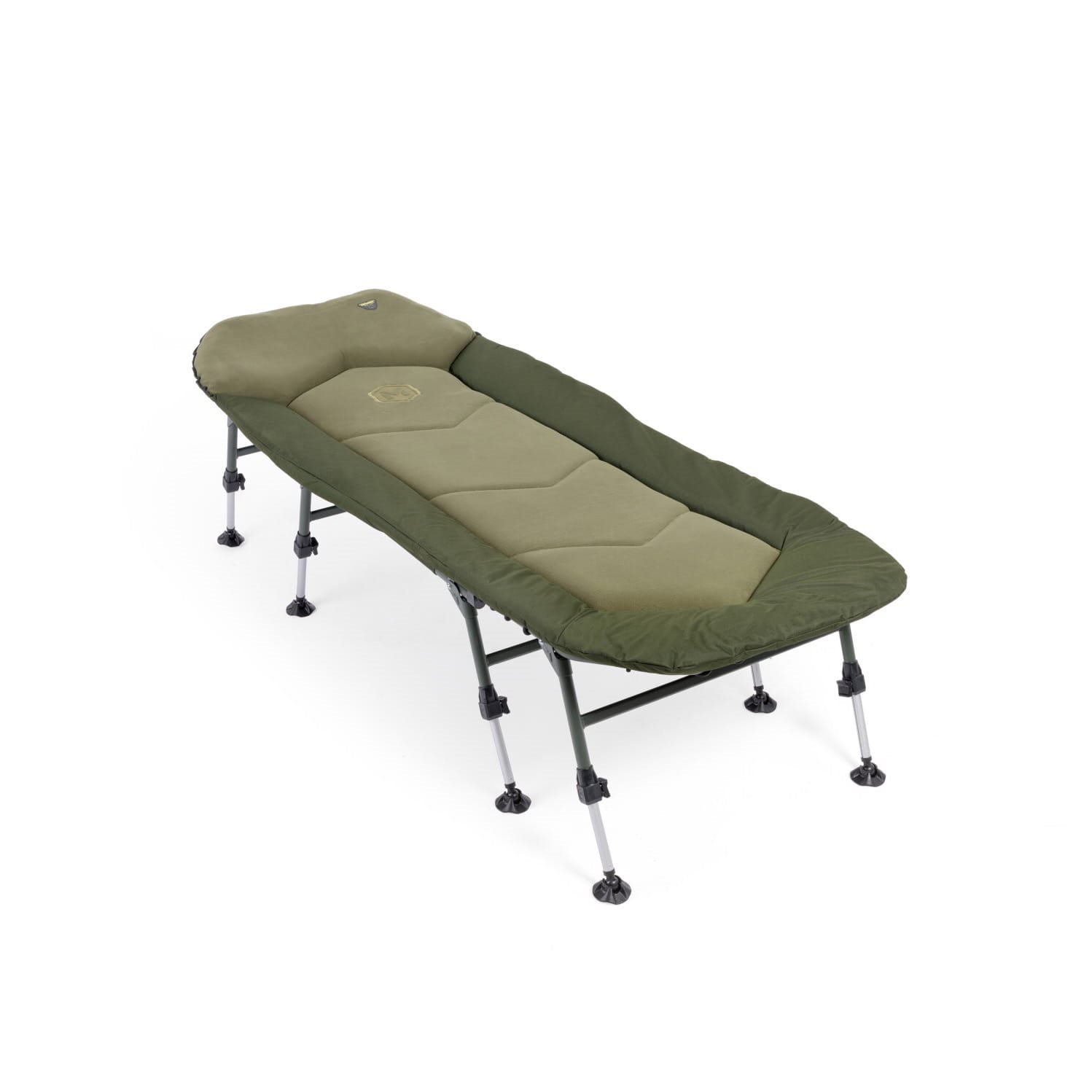 Une grande chaise longue à huit pieds au design unique et entièrement nouveau. Le matelas redessiné et agrandi est équipé d'un nouveau type de rembourrage plus épais. Sa forme anatomique attrayante combine les éléments du nouveau langage stylistique de la marque Mivardi avec des détails importants pour améliorer l'ergonomie globale. Associée à un système sophistiqué de réglage indépendant de la fermeté du matelas dans les parties inférieure, centrale et supérieure, cette nouvelle chaise longue offre un confort jusqu'alors inégalé dans sa catégorie. La housse de la chaise longue combine une polaire très confortable et chaude sur l'oreiller dans la partie centrale avec un nylon très résistant sur les bords et dans la partie inférieure. Les pieds télescopiques avec des patins pivotants anti-enfoncement sont équipés de verrous télescopiques Mivardi uniques, qui peuvent être actionnés en appuyant vers le bas ou sur le côté.