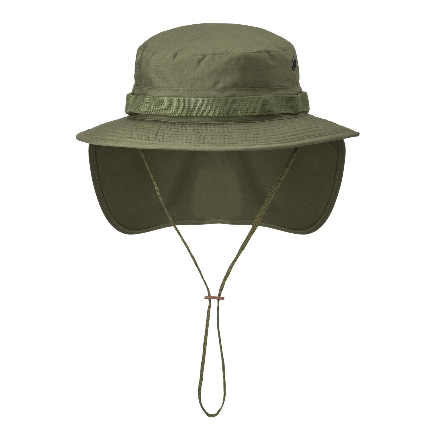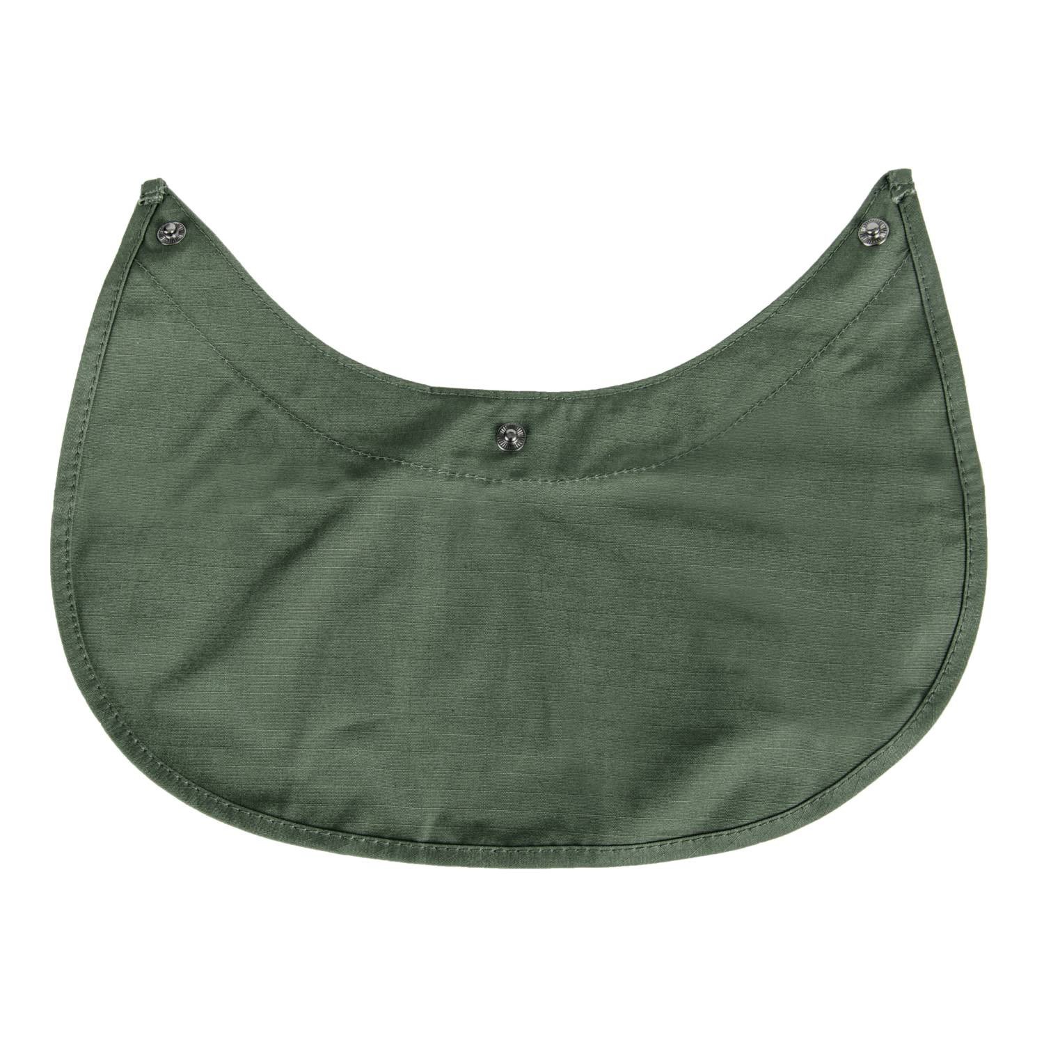 à l'arrière de la visière, il est possible d'attacher à l'aide de boutons-pression un rabat qui offre une protection supplémentaire contre le soleil, les insectes ou un camouflage supplémentaire