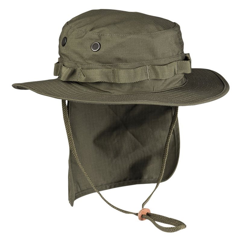 à l'arrière, il est possible de fixer à l'aide de bandes Velcro un tablier qui offre une protection supplémentaire contre le soleil, les insectes ou un camouflage supplémentaire